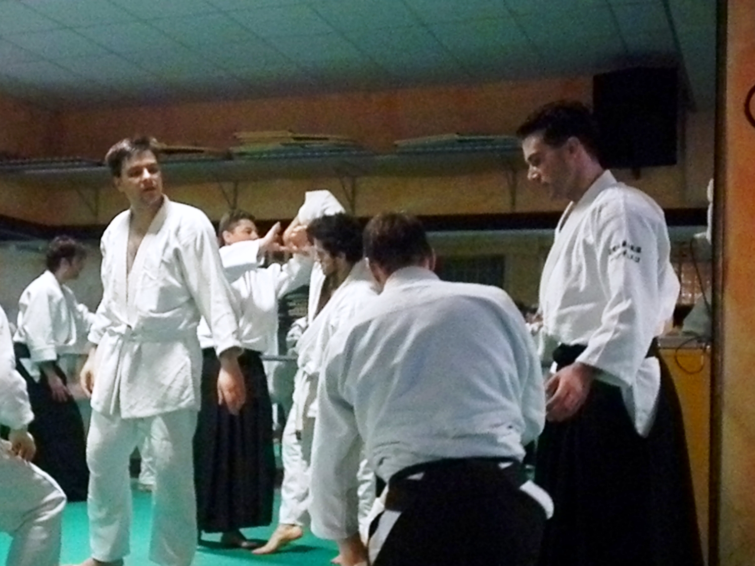 Due insegnanti chiamati nello stesso dojo a tenere dei seminars, tengono una lezione di Aikido.