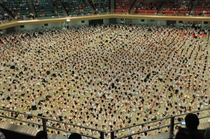 I am pleased to see that such a great number of students have come together at the Nippon Budokan for the All Children’s Aikido Meet in this hot weather. The big erathquake disaster occured on 11th March in the Higashi Nihon area and we still have a very serious situation. There are many friends who had planned to take part in this event but couldn’t because of the disaster. I am very pleased to hear that in spite of the difficult situation, 4 groups from the east side of Japan are able to participate in this event.