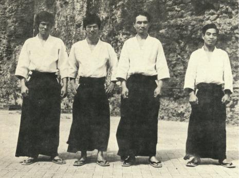A quei tempi viveva a Roma il prof. Mergé, che aveva frequentato lo ”Ueshiba Dojo” nel periodo in cui aveva lavorato presso l’Ambasciata ltaliana di Tokyo durante la guerra. Alcuni fra i suoi allievi dell’Ismeo di Roma, che avevano sentito parlare del Maestro Ueshiba Morihei dal professore, vennero subito ad iscriversi.