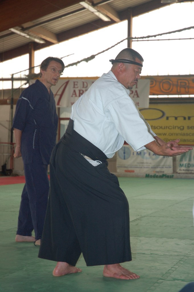 Oppure, se possiede la capacità fisica-tecnica – ed in particolare un buon potenziale atletico – senza una comprensione sufficiente rischierà di ferire Uke e, anche in questo caso, gli sarà impossibile di fare, di essere Aiki. Devo riconoscere che il lavoro con le armi, forse in ragione del pericolo che rappresentano nell’imaginario popolare, è un eccellente modo per entrare in questo aspetto della pratica. Ciò non significa che l’Aikido non lo sia, anzi al contrario ! Ma ricordo qualche serie di kata con cari amici alla fine dei quali le armi letteralmente fumavano! Altrettanto bene ricordo il mio inizio in Aikido quando facevo Uke per Tamura e Chiba Sensei: anche allora ho sperimentato una varietà impressionante di emozioni!