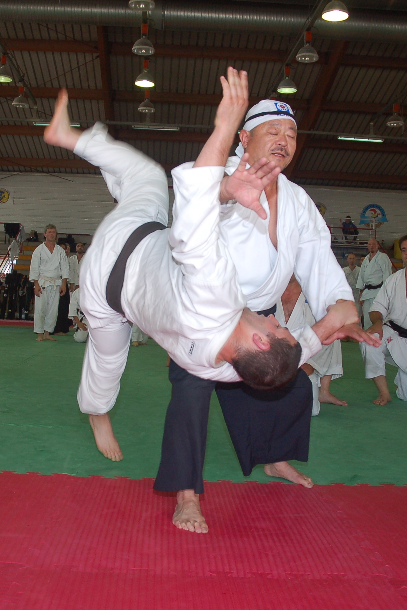 Oppure, se possiede la capacità fisica-tecnica – ed in particolare un buon potenziale atletico – senza una comprensione sufficiente rischierà di ferire Uke e, anche in questo caso, gli sarà impossibile di fare, di essere Aiki. Devo riconoscere che il lavoro con le armi, forse in ragione del pericolo che rappresentano nell’imaginario popolare, è un eccellente modo per entrare in questo aspetto della pratica. Ciò non significa che l’Aikido non lo sia, anzi al contrario ! Ma ricordo qualche serie di kata con cari amici alla fine dei quali le armi letteralmente fumavano! Altrettanto bene ricordo il mio inizio in Aikido quando facevo Uke per Tamura e Chiba Sensei: anche allora ho sperimentato una varietà impressionante di emozioni!