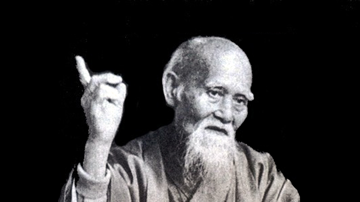 l’Aikido è ai (amore). Bisogna fare di questo grande amore per l’Universo il proprio cuore. La la nostra missione deve essere la protezione e l’amore verso tutte le cose. Il vero budo deve essere il compiere questa missione. Il vero budo significa conquistare se stessi ed eliminare lo spirito combattivo del nemico. È una via verso l’auto-perfezionamento assoluto in cui il [concetto di] nemico stesso viene eliminato. La tecnica di aiki è allenamento ascetico e un sistema attraverso il quale si raggiunge uno stato di unificazione del corpo e dello spirito mediante la realizzazione dei principi del Cielo.