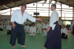 Pregunta de reserva, que nos reconducirá luego sobre el mismo argumento. Yo soy de la escuela Aikikai Hombu Dojo, por el Aikikai de Italia y mis relaciones con el Iwama Ryu son recientes. Tengo que decir que estoy muy enfadado y que también me siento un poco estafado, en cierto sentido: ¿por qué no enseña el Aikikai Kihon y Buki Waza de Iwama Ryu?