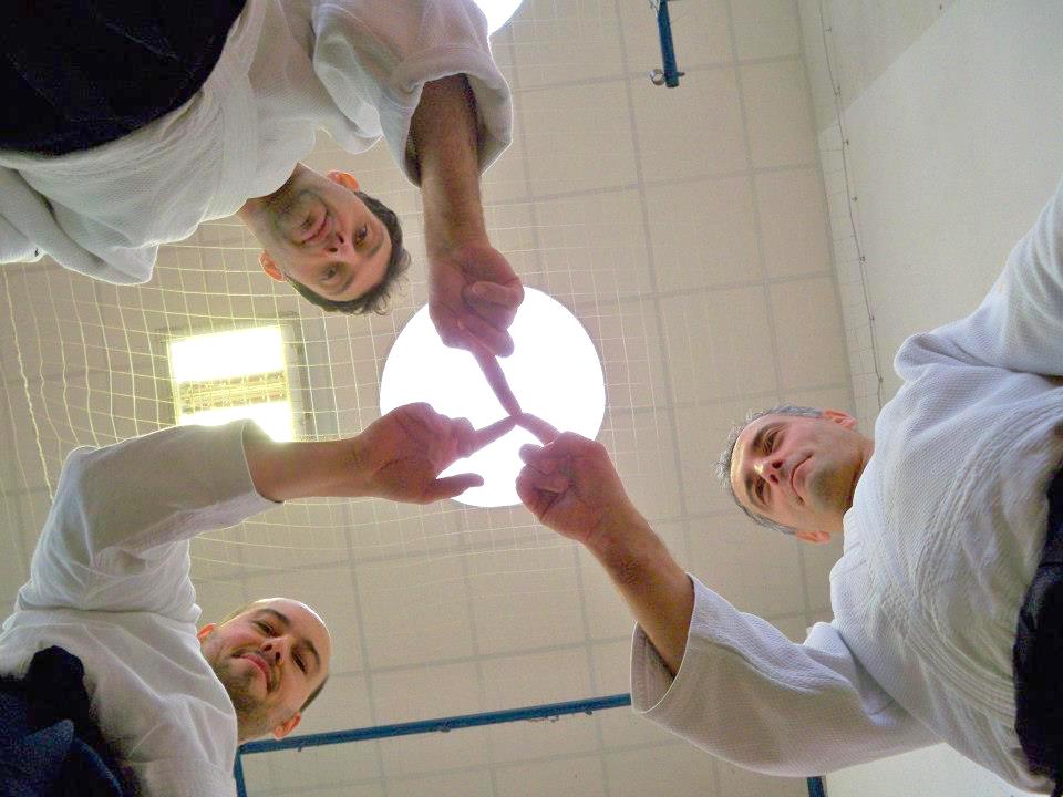 – al termine di ogni trance di allenamento (sabato mattina, sabato pomeriggio, domenica mattina) abbiamo invitato i presenti a formare piccoli gruppi (3 o 4 persone) e a discutere fra loro di tematiche particolarmente attinenti all’Aikido ed alla sua pratica;