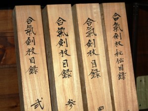 In this showcase I keep my weapons Mokuroku: these are real treasures because they came out of use. For some time Saito Sensei wanted to perpetuate the ancient tradition of giving some of his students grades accompanied by Mokuroku, that is a scroll, in opposition to the modern certificate on paper. In this scroll, kept inside a light wooden box, on the back of which was written Ai Ki Ken Jo Mokuroku and the grade, Saito sensei wrote by hand which degree of weapons was released for, together with its entire program according to Iwama pedagogy. Saito Sensei did not make many of them, because he was criticized by the usual unknown, people full of envy and with a frightening ego who started the rumour that he gave these scrolls around for personal gain. These people never understood the historical and emotional, spiritual meaning that those Mokuroku have, a quite different one from the standard piece of paper.
