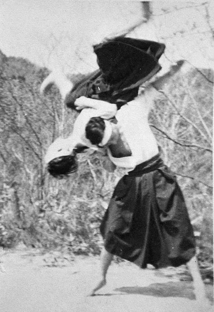 Altro punto della situazione: nel 1908 il 25enne Ueshiba aveva certamente accresciuto le sue capacità fisiche in modo notevole, e in qualche modo aveva anche migliorato quelle marziali, servendosi di frequentazioni saltuarie di specialisti di provincia e delle opportunità offerte dall’addestramento militare. Di sicuro non aveva mai ricevuto addestramento formale continuativo e non era ancora in nessun modo un esperto di qualsiasi Budo.