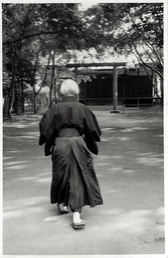 Mentre lavoravo, all’incirca verso la fine della pratica, il Fondatore mi chiamò nei suoi alloggi. Mentre andavo, venni a sapere che il Fondatore aveva poi insegnato quella sera e che la mia assenza era stata notata. Mentre entravo nel suo alloggio ero decisamente nervoso e mi stavo preparando al peggio. Entrai nel suo salotto e mi sedetti nervosamente davanti a lui. Mi disse: “Devi frequentare la lezione di ji-san”. (Ji-san è un soprannome che significa “vecchio”, un termine che a volte usava in riferimento a se stesso). “Cosa stavi facendo?”. “O Sensei mi aveva ordinato di tagliare il bambù”, dissi molto rispettosamente. Mi rispose: “Il bambù può essere tagliato in qualsiasi momento, invece non sarai in grado di seguire la pratica di ji-san per sempre. Non so quando sarà che gli dei mi chiameranno, ma ormai non passerà molto tempo”.