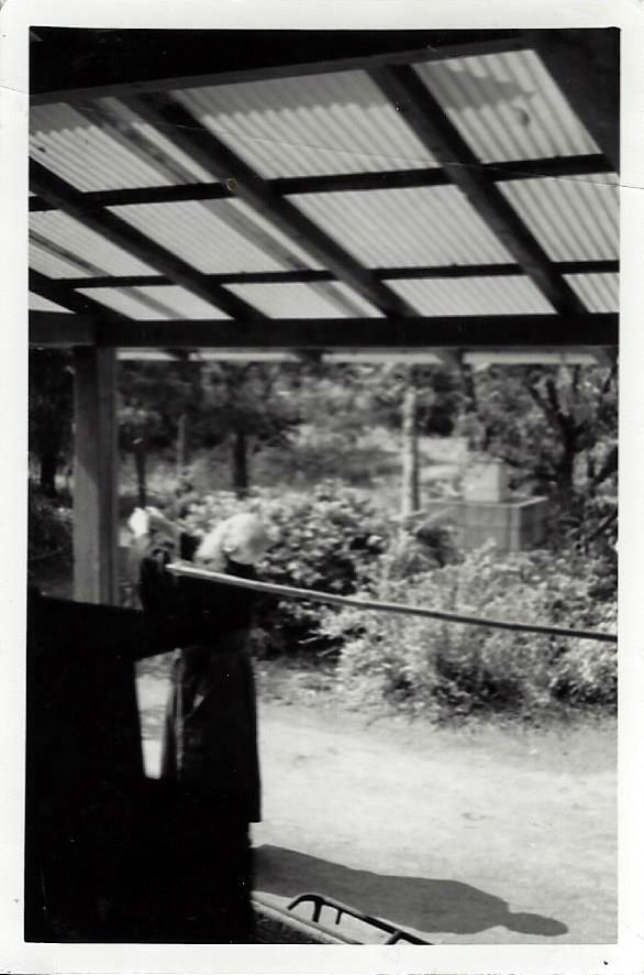 Dopo tutti questi anni, ricordo ancora di quando si faceva il mochi per le cerimonie mensili. Una volta in particolare, ricordo che mentre mettevamo il fumante riso mochi sulla pietra usu per schiacciarlo, dal riso bollente si alzava vapore, rendendomi temporaneamente incapace di vedere le mie mani per preparare il riso per il martellamento. Dato che stavo usando entrambe le mani per tenere l’usu, non potevo scansare il vapore dai miei occhi. Senza pensare, provai a soffiar via il vapore dai miei occhi.