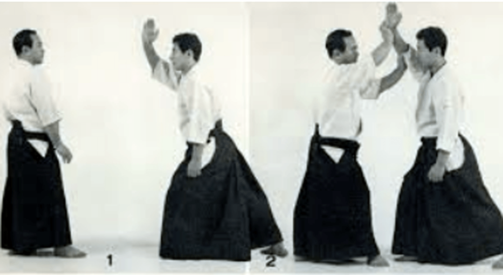 Per esempio Tohei sembra aver praticamente rinunciato a diversi degli aspetti menzionati, pur avendo egli profondamente analizzato certe dinamiche corporee dando loro un senso attraverso i suoi famosi Motti sulla Unificazione Mente-corpo e le sue Strategie Relazionali (mettersi al posto dell’ avversario con ciò comprendendone le ragioni, sostituire il proprio centro al suo, guidarlo nel suo proposito fino al compimento della sua azione senza conflitto). Ed infatti propone un diverso modello di Ikkyo, dove non è l’ aikidoka che entra dentro l’ avversario con corpo e mente unificati, ma si attende lo shomen uchi del compagno, accettandolo passivamente nel proprio spazio di azione, perché in fondo, siamo i buoni, no? Peccato che il braccio sinistro di Uke sia cosi’ incline al perdono, cosi’ ci si perdona a vicenda, e non si fa AiKi-Dō. Ma sicuramente questa filosofia (pseudocristiana?) è accettabile per gli Americani dell’ epoca.