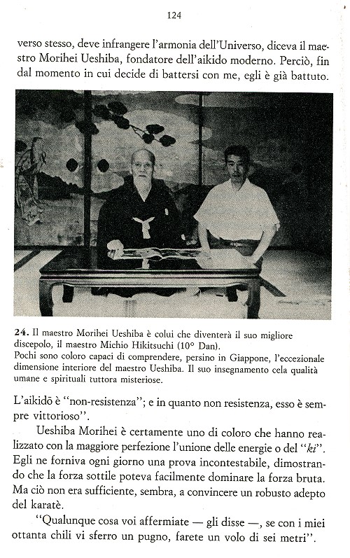 Ci permettiamo solamente altre poche righe; non manca ovviamente una citazione di Ueshiba Morihei, creatore di quella che sembra incontestabilmente la più indecifrabile delle moderne discipline di derivazione marziale.