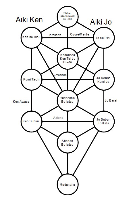 In una nota presente in un precedente lavoro è riportato in nuce quanto analizzato più ampiamente in questo lavoro, in cui si vuole utilizzare il diagramma dell’Albero della Vita prima descritto per una lettura simbolica della pratica dell’Aikido .