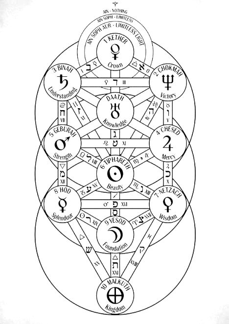 Una delle immagini più note tra quella legata alla Cabala ebraica è senz’altro il cosiddetto “Albero della Vita” , un glifo dai molteplici e profondi significati composto essenzialmente da 10 nodi e 22 linee che li collegano. I nodi sono disposti in tre colonne per rappresentare l’appartenenza a una categoria comune e vengono solitamente rappresentati come sfere mentre le linee sono viste come percorsi, collegamenti e legami.