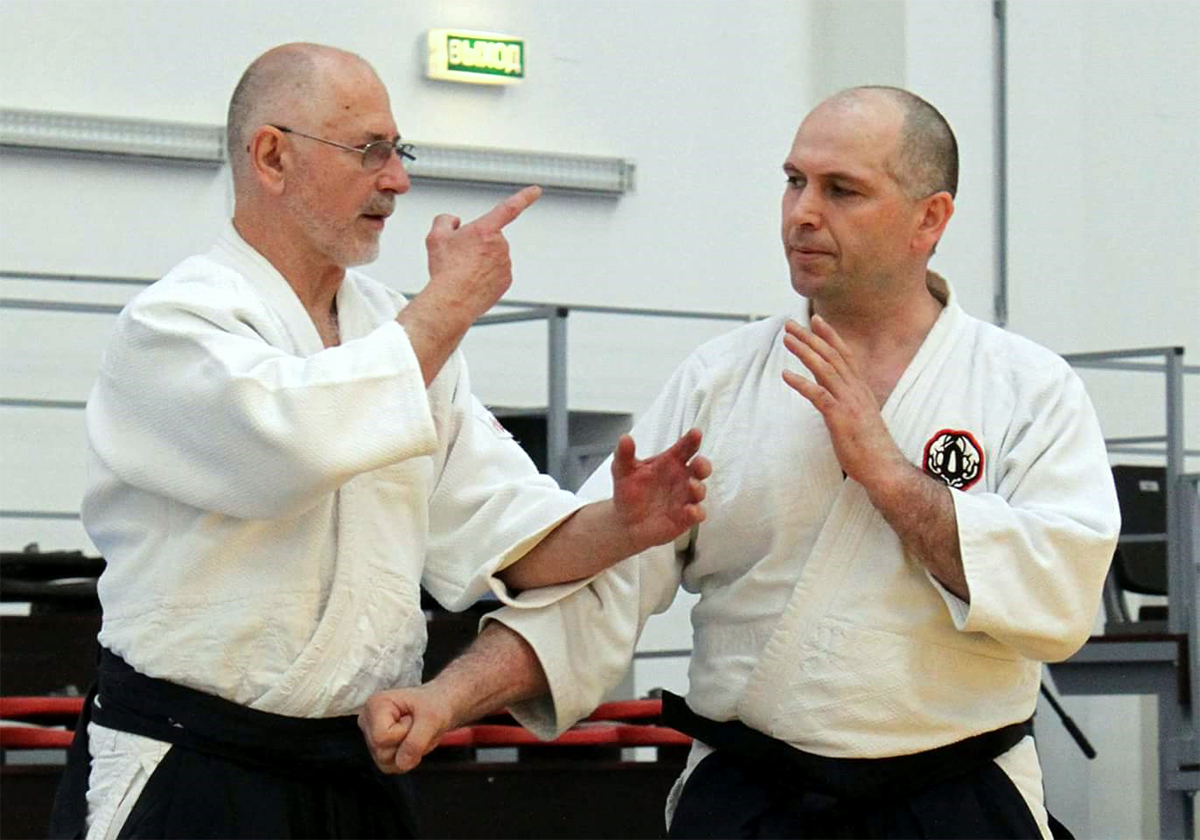 [13] Forme di liberazione da presa di tipo “Gō”, ideate da Minoru Mochizuki sensei. Insegnano come liberarsi da un attacco in presa mantenendo un controllo costante della struttura dell’avversario e effettuando il “Kuzushi” o rottura dell’equilibrio. Inoltre mostrano le “direzioni d’attacco” e il modo di evadervi, siano prese o colpi.