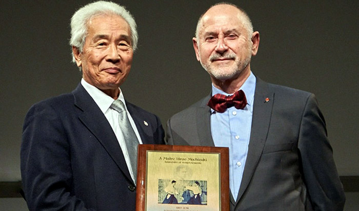 Infatti, nel 1982 Floquet sensei trovò un’altra risposta nelle sue ricerche sul mondo dell’Aiki e del Budō: con la mediazione e raccomandazione di Minoru Mochizuki sensei, iniziò la pratica del Tenshin Shōden Katori Shintō Ryū secondo la linea ufficiale del Sugino Dōjō di Kawasaki [8].