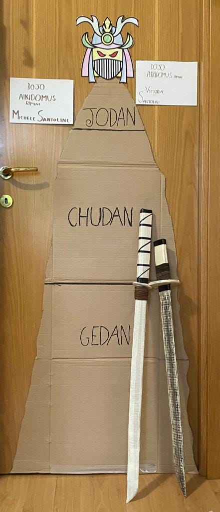 Nei giorni precedenti ho pubblicato un semplice tutorial per giocare a costruire in casa una propria katana ma poi, nel corso della lezione, c’è stata da parte mia la richiesta della massima serietà e impegno, così come si conviene a dei giovani aspiranti samurai. Le foto postate su facebook che ritraggono questi bambini mostrare orgogliosi il loro manufatto e i video mentre eseguono i miei esercizi è stata sicuramente la cosa che mi ha gratificato maggiormente. Anche molti adulti hanno postato foto e video che testimoniavano il loro divertimento e la loro soddisfazione. Talvolta hanno pubblicato foto che ironizzavano sulla difficoltà di alcuni esercizi, altri orgogliosamente mi hanno inviato video per dimostrarmi di avere realmente appreso e altri ancora hanno testimoniato qualche piccolo incidente domestico con lampadari andati in frantumi. Comunque è evidente che gran parte dei partecipanti ha in qualche modo fatto tesoro di questa esperienza. Il mio scopo era quello di dare un contributo per mantenere vivo l’interesse per la pratica e unite le persone nel nome dell’Aikido e posso dire di averlo raggiunto.