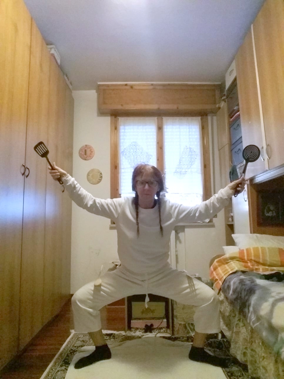 Tecnicamente mi sono mosso così. Come da programma pubblicato sui volantini, ogni sabato alle 16 ho inviato il primo video del saluto dove anticipavo a grandi linee il contenuto della lezione e a seguire, ad intervalli regolari, ho inviato le varie proposte tecniche. Benché ormai abituato a gestire la tensione durante seminari anche molto popolati, in questa situazione ho vissuto emozioni davvero nuove. Stranissimo trovarmi seduto davanti al mio computer mentre così tante persone si stanno allenando collegate da casa. Percepire la loro attesa e la loro curiosità di vedere cosa stavo per proporre è stata una emozione nuova e molto intensa e ancor più strano ritrovarmi a sudare per la tensione davanti al PC forse di più che per dirigere una normale lezione.