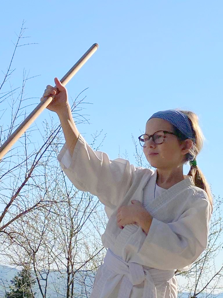 Il ciclo doveva a questo punto essere completo anche perché dal 4 Maggio, benché non fosse ancora possibile allenarsi in compagnia, era finalmente consentito uscire di casa. Tuttavia il 16 Maggio ho deciso di organizzare una nona lezione extra da dedicare ai bambini e per renderla più appetibile ho deciso di passare all’uso del bokken. Il fatto che mi ha spronato è stata la adesione ai miei seminari da parte di diversi bambini che non avevano mai praticato prima Aikido né tantomeno mai preso in mano un jo o un bokken. Il fatto che, in un momento in cui gran parte delle persone ha abbandonato la pratica, diversi bambini la abbiano invece scoperta attraverso la mia iniziativa mi è sembrata una cosa davvero bellissima. Genitori, zii e nonni hanno avuto sicuramente un ruolo di incoraggiamento fondamentale, invitando i piccoli a giocare con loro a fare Aikido. E quindi ho deciso che questo doveva essere lo scopo della nona lezione.