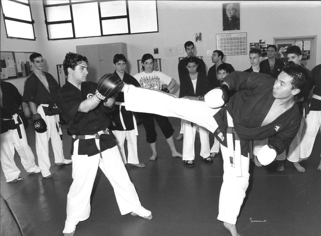 Va anche tenuta in considerazione l’apertura da sempre manifestata dai maestri Mochizuki verso le discipline da combattimento occidentali. Nel suo viaggio in Occidente nel 1950, Minoru Mochizuki sensei ebbe modo di apprezzare la lotta, il pugilato e il pugilato francese, così spronò suo figlio Hiroo a studiare questi sistemi, oltre il Karate di Okinawa e quello “giapponese” [6]. Ed è quello che lui fece con un apprendistato in patria col campione giapponese dei pesi Piuma Noboru Kushida [7] ed uno in Francia con maître Roger Laffond, esperto e ideatore di un metodo di Boxe Francese e Canne de Combat [8].