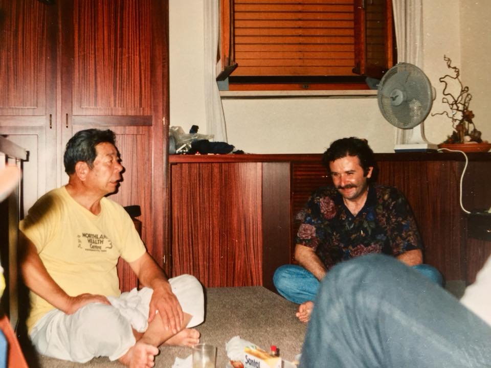 “I’m now going to wrap it up with something amusing. When this practice was over, he said: ‘Go get ready, it will soon be time for dinner’. We got changed and before long he called out to us. In this old house there was an irori, a hearth, composed of a square of wood, embers and a large pot hanging down in the middle of the house. He was standing on the opposite side of that square and was stirring a steaming soup with a wooden ladle. Gianfranco and I were on the opposite side of the irori.