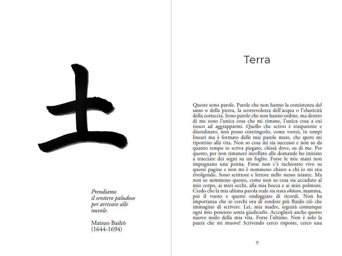 Un romanzo apparentemente di formazione che nello svolgersi della trama diventa contaminazione tra Italia e Giappone, tra antico e moderno, tra l’illusione di poter incontrare un maestro, una guida e la consapevolezza che anche i maestri fanno i conti con la misteriosa complessità della vita reale.