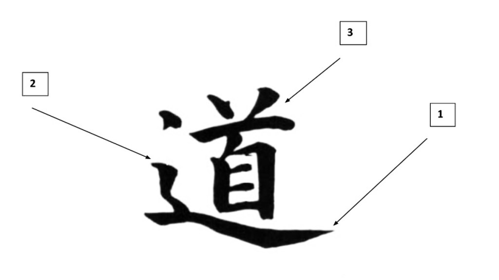Ove 1 è il percorso di pratica, 2 il praticante (su cui spicca la testa, significando che deve essere consapevole) e 3 che indica il Maestro capo-scuola (rappresentato dalla stilizzazione del vecchio copricapo utilizzato dai Maestri).