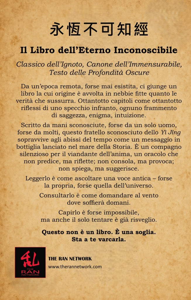 Scritto da mani sconosciute, forse da un solo uomo, forse da molti, questo fratello sconosciuto dello Yì Jīng sopravvive agli abissi del tempo come un messaggio in bottiglia lanciato nel mare della Storia. È un compagno silenzioso per il viandante dell’anima, un oracolo che non predice, ma riflette; non consola, ma provoca; non spiega, ma suggerisce.