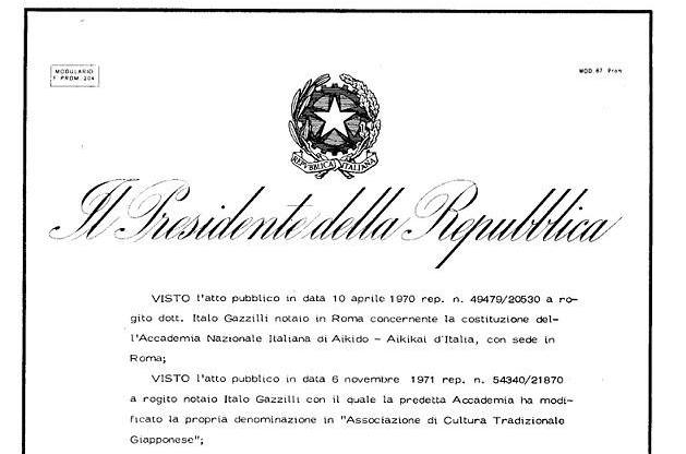 Riconoscimento della Personalità Giuridica dell’Aikikai d’Italia